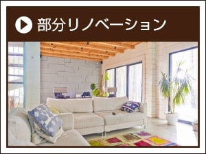 フルリノベーション 部分リノベーション 玄関、居間等の間取り変更 台所、浴室、トイレ等水周り 電気工事 塗装工事 板金工事 建具工事 外構工事 バリアフリー工事 防犯工事 耐震工事 省エネリフォーム工事 防水・防災工事 空き家相談 一級建築士が対応 アフターサービス充実 自由設計 定額パッケージ ショールーム有 その他