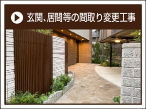 フルリノベーション 部分リノベーション 玄関、居間等の間取り変更 台所、浴室、トイレ等水廻り 電気工事 塗装工事 板金工事 建具工事 外構工事 バリアフリー工事 防犯工事 耐震工事 省エネリフォーム工事 防水・防災工事 空き家相談 一級建築士が対応 アフターサービス充実 自由設計 定額パッケージ ショールーム有 その他